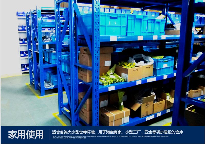 中型货架适用于人工堆放作业,适用于存放轻、小物品;常应用于电子、服装、医药、食品、电商仓储、跨境电商配送中心等领域。